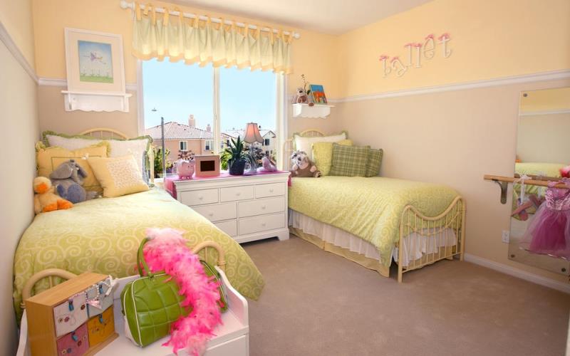 Если дети подрастут, то кровати можно немного отдалить друг от друга, переставив в противоположные углы, чтобы создать более личное пространство.